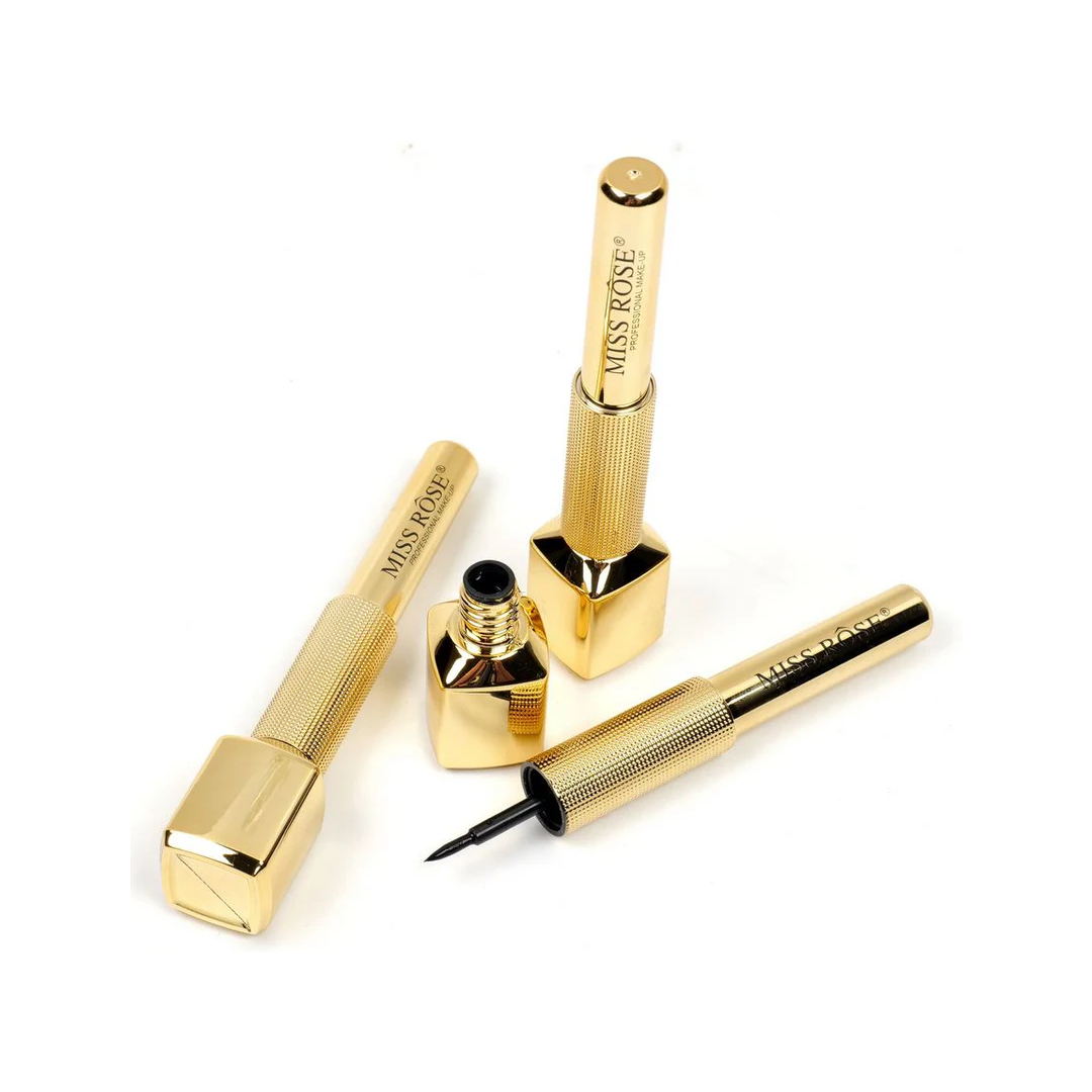 Achieve precise, bold lines effortlessly with Miss Rose Golden Cap Eyeliner. This liquid eyeliner delivers a deep matte black finish that stays put all day, perfect for sleek wings or dramatic eye looks.